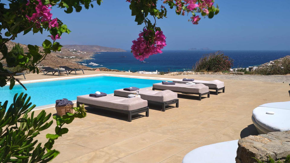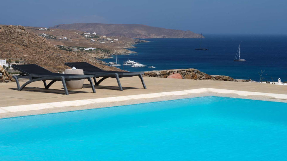 A gorgeous home that enjoys panoramic views of Kalafatis bay and minimal on the inside, the villa comprises of a three-storey main house and a separate guest house, all together sleeping up to 12 guests in utter comfort and privacy.