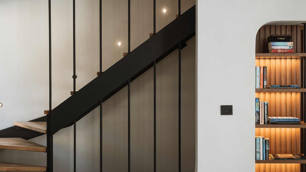 The interior echoes the modern lines of the exterior. The living areas are light-filled and clean-lined, outfitted with modern furniture in neutral tones. The sea-facing part of the house is pierced by large sliding doors that connect the rooms to the seascape and let the sunlight in. The bedrooms are intimate in size and minimal in decorations to create a relaxing atmosphere and bring focus to the landscape views that are framed by the windows. The guests of the villa can enjoy freshly cut products from the owner’s organic gardens.